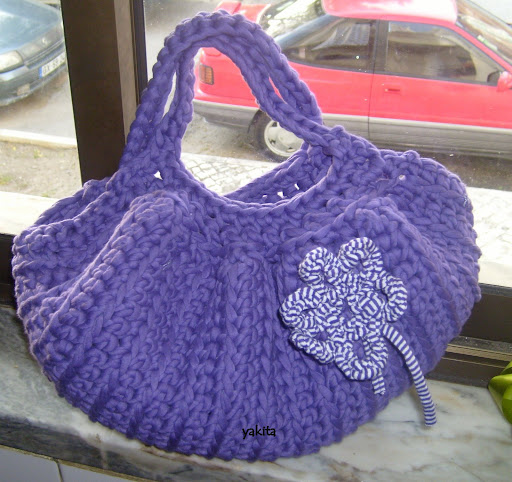 Esta mala foi a minha primeira experiência em trapilho e ficou muito mimosa :) a mana foi a sortuda que ficou com ela!!
